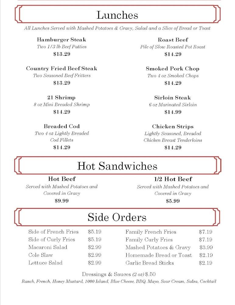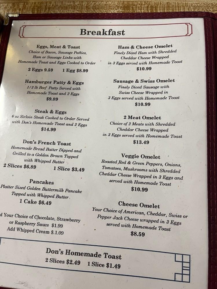 The menu at Don's Cafe excels in comfort food. Breakfast includes hearty options like omelets, pancakes, and classic eggs. Lunch favors burgers and sandwiches, especially the renowned hot beef. Other signature plates, such as grilled cheese and shrimp dishes, capture the essence of home-cooked meals.